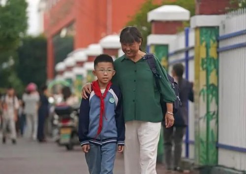 這是在江西省鉛山縣縣城,羅細英(右)接外孫放學(9月27日攝)。新華社記者 萬象 攝