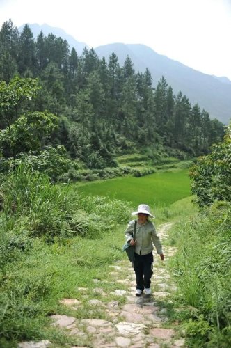 這是在江西省鉛山縣陳坊鄉(xiāng),羅細英在步行送郵件的路上(2011年7月20日攝)。新華社記者 周密 攝