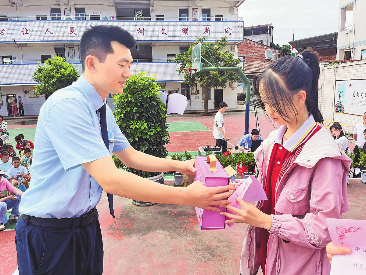 羅為幫助網(wǎng)點(diǎn)與學(xué)校建聯(lián),為學(xué)生捐贈學(xué)習(xí)用品。