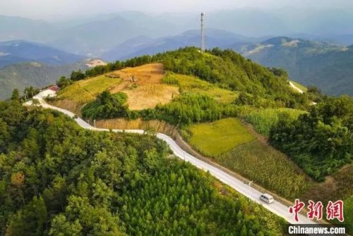 黃德印駕駛面包車穿行山路。(無人機照片)張倩龍 攝