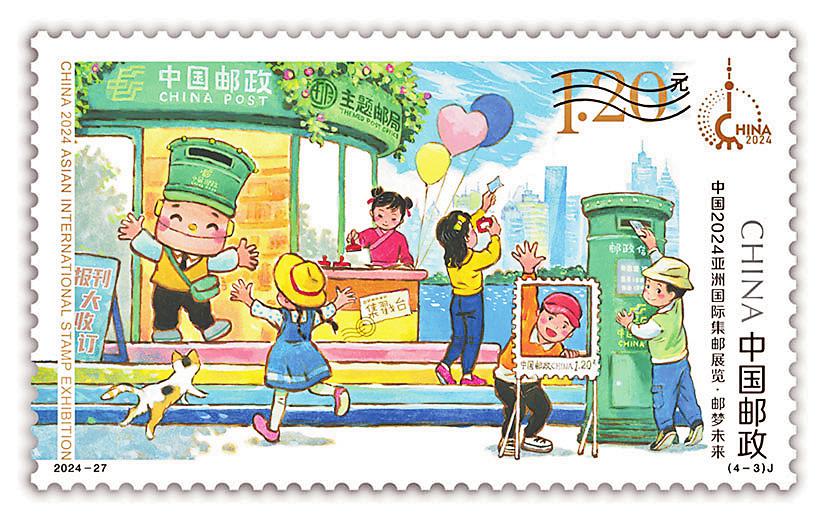 中國郵政定于2024年11月29日發(fā)行2024-27J《中國2024亞洲國際集郵展覽》紀(jì)念郵票一套4枚、小型張1枚。郵票名稱分別為“鼎啟新章”“滬韻流光”“郵夢未來”“郵博古今”,小型張名為“浦江朝暉”。郵票設(shè)計(jì)者分別為夏競秋、王晨、景紹宗、潘虎,小型張?jiān)O(shè)計(jì)者為王虎鳴。
