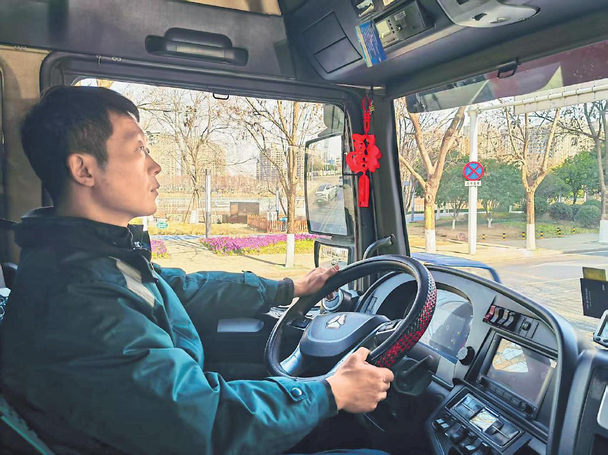 在忙碌中,陳文海會(huì)不時(shí)掃視一眼掛在駕駛室左側(cè)的“平安?!?,這是家人送給他的?!捌桨哺!睅?lái)了年味,也寄托著他70多歲的父母、勤勞持家的妻子、就讀高三的女兒的牽掛,提醒著他注意安全和保重身體。