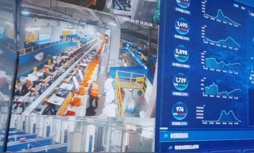走進(jìn)中國(guó)郵政位于北京的全國(guó)指揮調(diào)度中心,首先映入眼簾的是一塊布滿整個(gè)墻面的智慧大屏。大屏左右兩側(cè)的一個(gè)個(gè)方格中呈現(xiàn)出不同處理中心的實(shí)時(shí)分揀畫面,中間則可看到各處理中心的郵件量、車輛數(shù)、車輛運(yùn)行軌跡以及異常事件提醒等相關(guān)數(shù)據(jù)信息,整個(gè)郵政網(wǎng)絡(luò)的運(yùn)行情況一目了然。