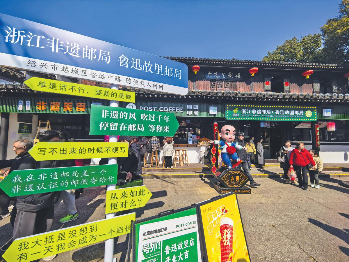 春節(jié)已過,年味仍濃。2025年的首個(gè)“非遺春節(jié)”帶火了“新中式旅游”,也掀起了古韻名城紹興的旅游熱潮。春節(jié)假期,位于浙江省紹興市的魯迅故里景區(qū)游人如織。在景區(qū)大門口的戴家臺(tái)門,一座融合了非遺與百年郵政底蘊(yùn)的非遺郵局,成為游客爭(zhēng)相打卡的熱門景點(diǎn)。