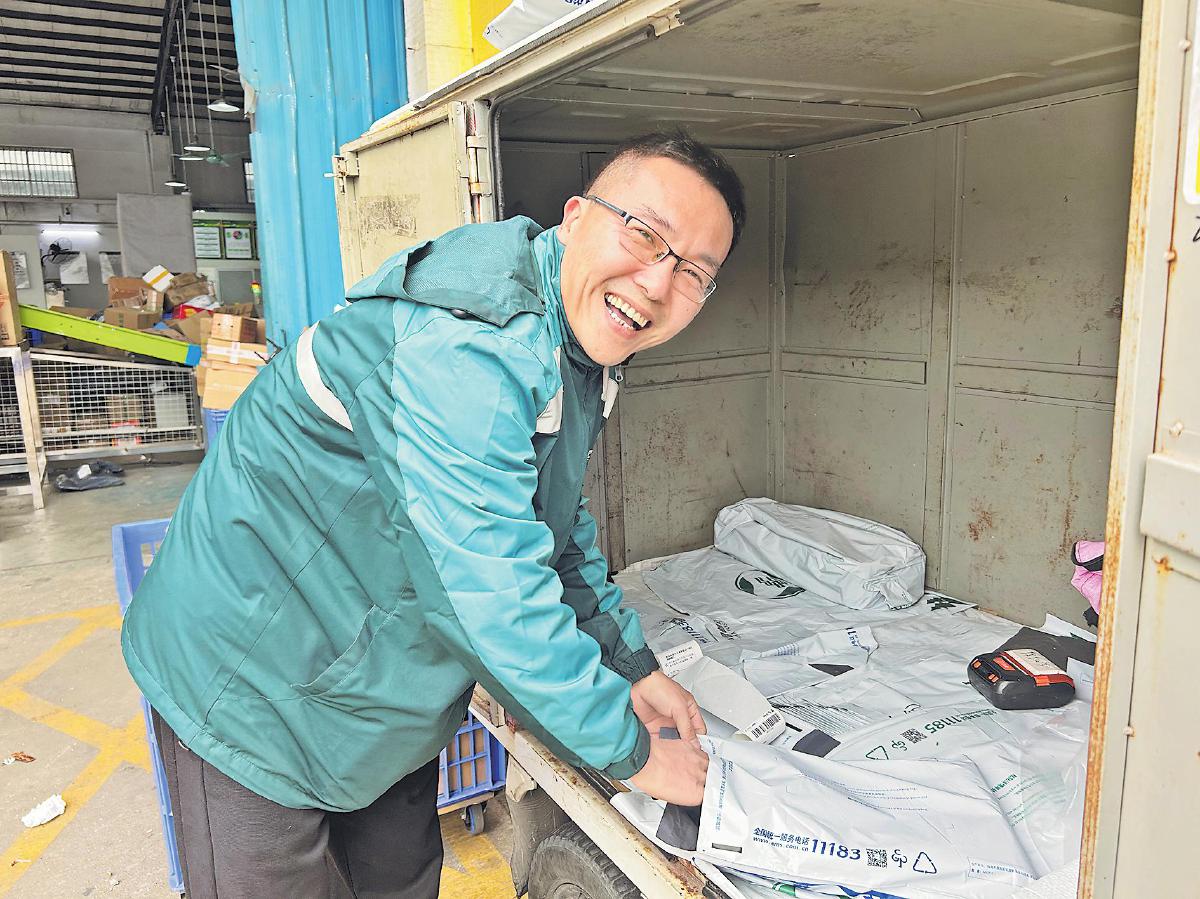 “樂天派”陳敬盛正在處理攬收郵件。