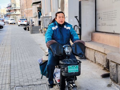 趙明枝代表所負(fù)責(zé)投遞區(qū)域涉及30多條街巷、3萬多名群眾。每天她都會(huì)準(zhǔn)時(shí)把報(bào)刊書信送到收件人手中。(代表供圖)