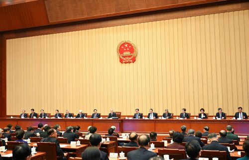 受主席團(tuán)常務(wù)主席趙樂(lè)際委托,主席團(tuán)常務(wù)主席李鴻忠主持會(huì)議。