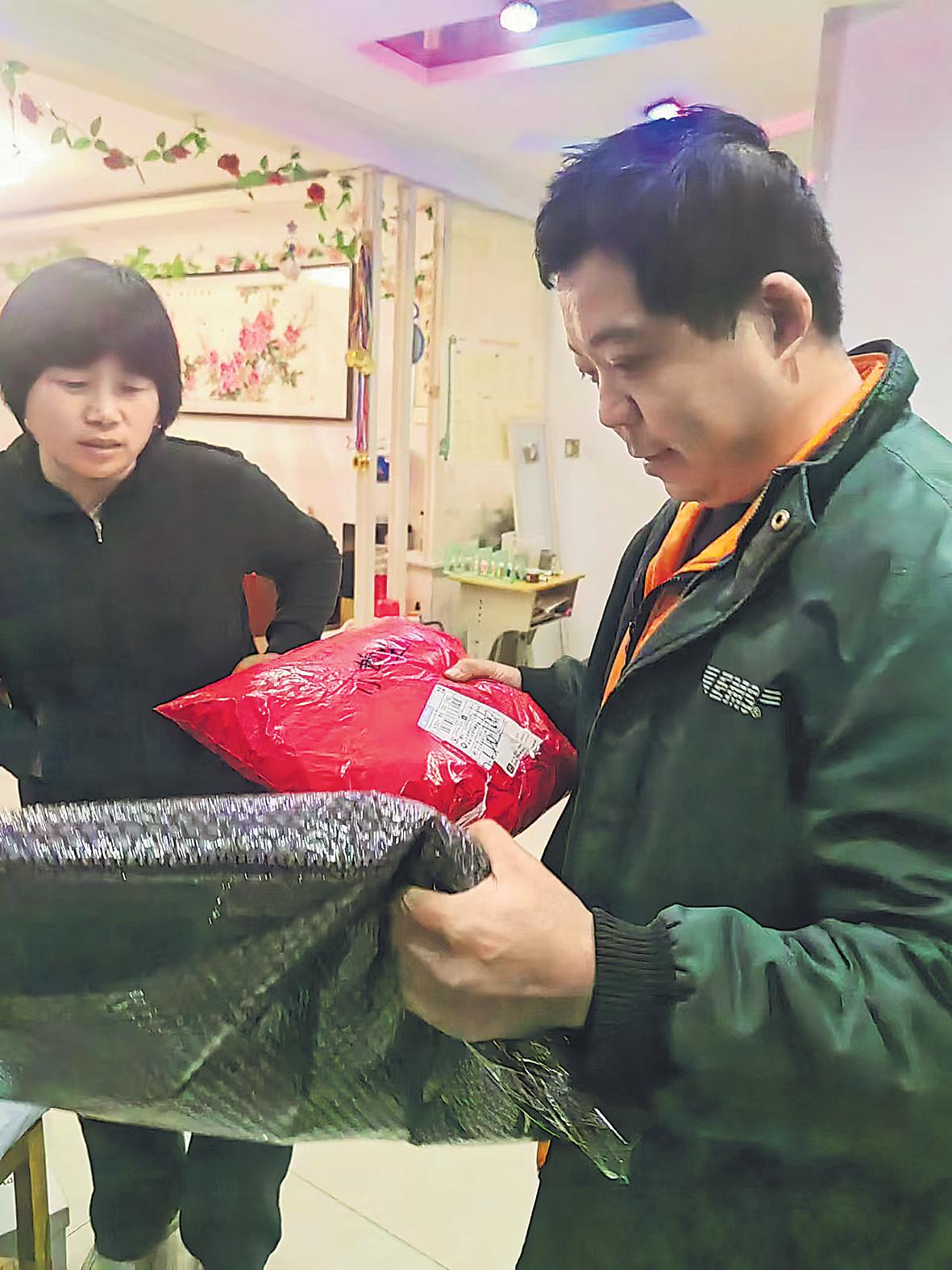 沿街的18家重點(diǎn)商戶更視他為“定海神針”。某文具店老板也回憶說,去年“雙11”,店里堆積如山的包裹讓自己幾乎崩潰。相靜雪得知后,主動延長工作時間,從晚8點(diǎn)忙到次日凌晨1點(diǎn),他和同事們幫著封裝、分發(fā),搬完500多件貨物,手臂被紙箱邊緣劃出血痕也渾然不覺。餐飲店老板娘張姐笑道:“老相的‘錯峰攬收法’比鬧鐘還準(zhǔn),上午收電商件,下午取外賣箱,晚上處理加急單。有他在,我們只管接單,從不怕物流掉鏈子!”