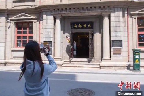 2025年4月,游客在煙臺大龍郵局建筑前拍照。曲正揚 攝