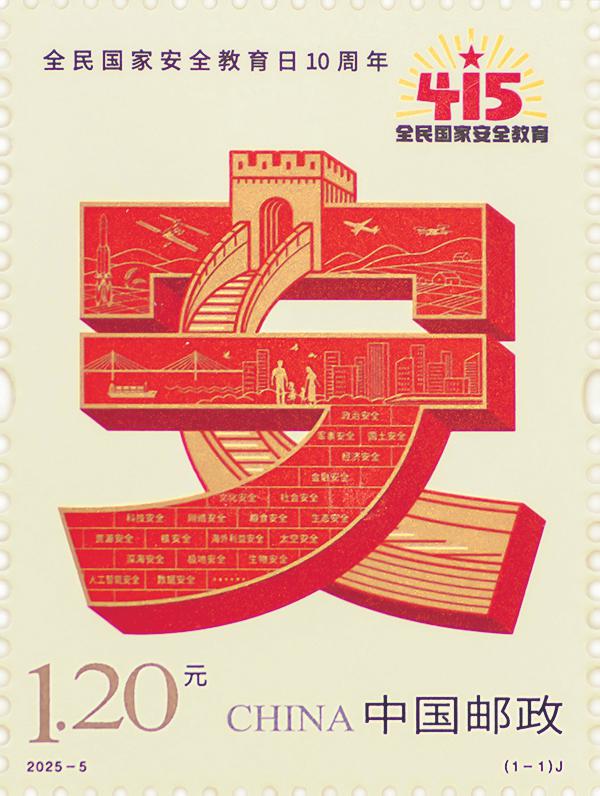 4月15日,《全民國家安全教育日10周年》紀(jì)念郵票發(fā)行。該郵票一套1枚,圖案名稱為“全民國家安全教育日10周年”。