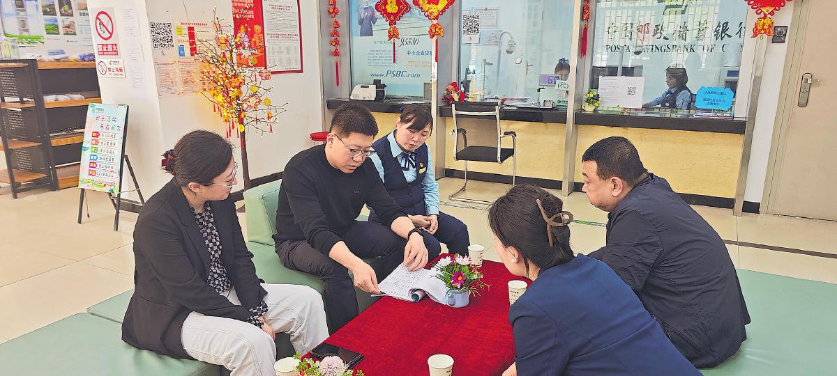 張育琪(左二)在基層網(wǎng)點調(diào)研指導工作。