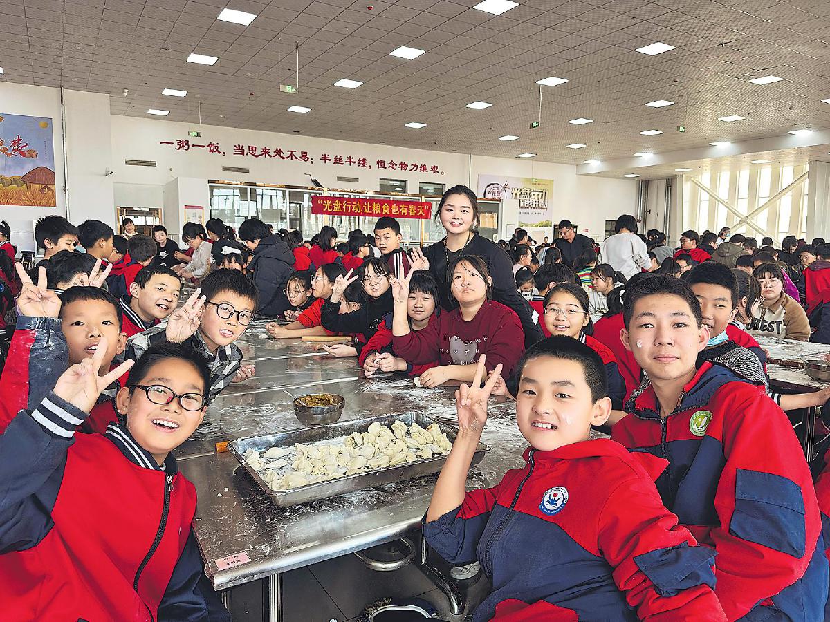 單淋琳和學(xué)生們一起包餃子。