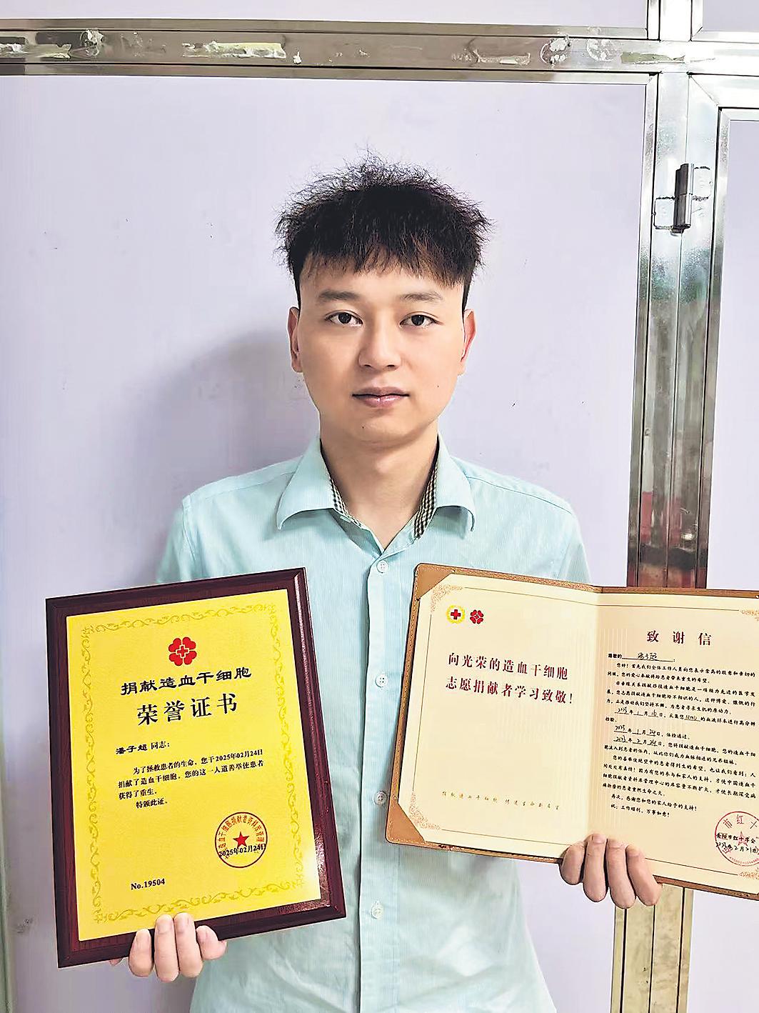 潘子超心地善良,多次參加公益志愿活動和無償獻血活動。2016年讀大學期間,他在一次無償獻血時,從采血醫(yī)務(wù)人員那里了解到關(guān)于造血干細胞捐獻的相關(guān)知識。得知小小的細胞可能成為血液病患者絕境中的希望之光后,同年8月,他報名加入中華骨髓庫,成為又一顆充滿希望的“種子”。