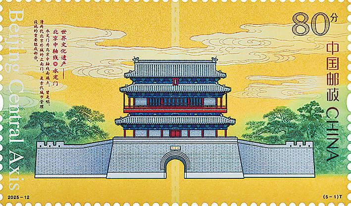 《世界文化遺產(chǎn)——北京中軸線》特種郵票第一枚“永定門”。