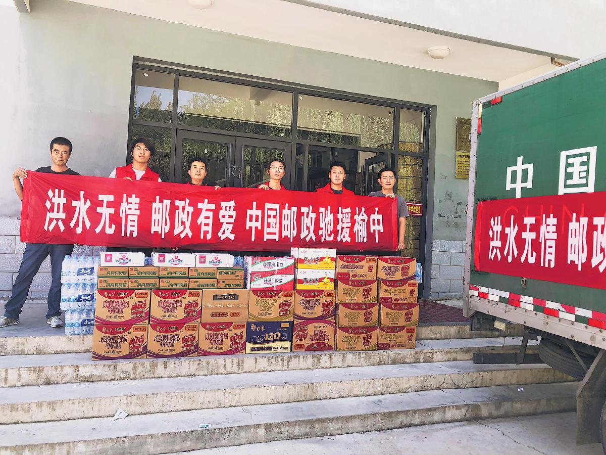 房屋被沖毀、道路被沖斷,但寄遞服務(wù)不中斷、金融服務(wù)不中斷、為人民服務(wù)的情懷不中斷。8月10日,榆中縣分公司第一時(shí)間在高崖鎮(zhèn)榆中三中安置點(diǎn)設(shè)置臨時(shí)郵局,提供快遞收發(fā)、公益食品發(fā)放、書報(bào)刊贈(zèng)閱等服務(wù)。