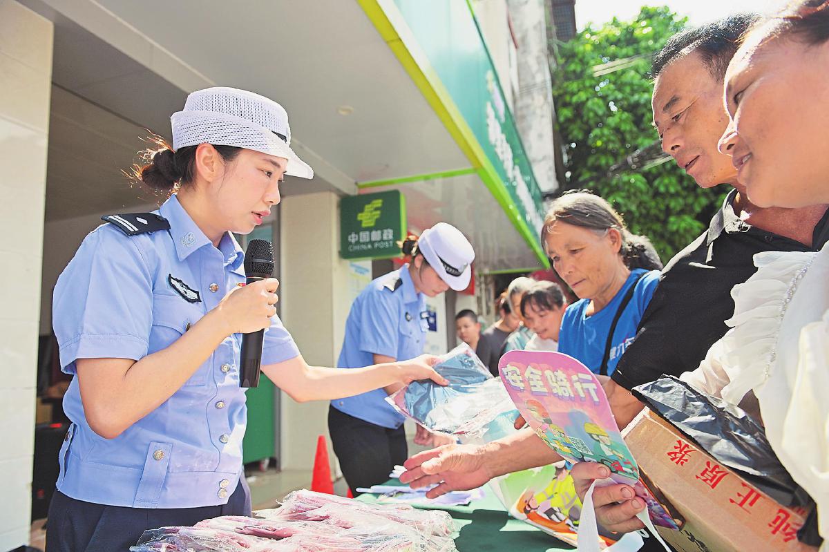 “橫過道路先觀察,一停二看三通過?!鼻宕囗懥恋慕煌ò踩珡V播在廣西壯族自治區(qū)南寧市青秀區(qū)南陽鎮(zhèn)回蕩。7月29日,南寧市郵政分公司與公安局交警支隊(duì)聯(lián)合開展“警郵聯(lián)動(dòng) ‘大喇叭’進(jìn)農(nóng)村”交通安全主題宣傳活動(dòng)。