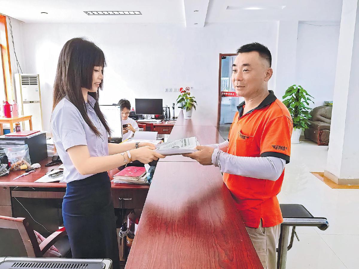 朱紅強(右)為客戶投遞報刊。