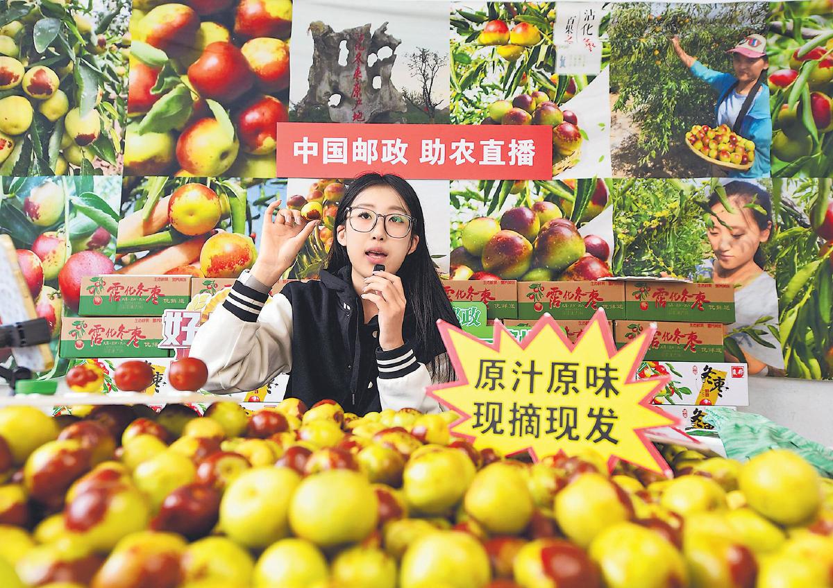 山東郵政開展溯源直播,全程呵護(hù)農(nóng)產(chǎn)品“郵味到家”。 □吳檜昀 攝