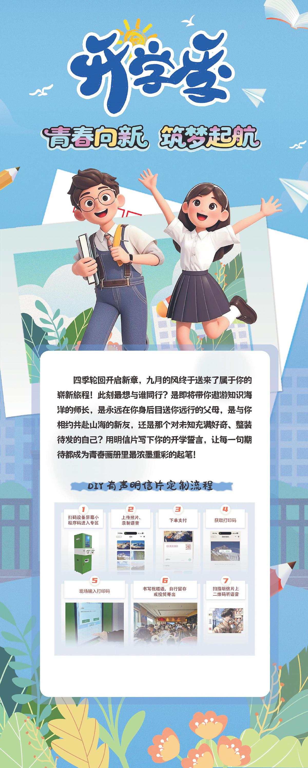 9月6日是鷹潭職業(yè)技術學院開學的日子。鷹潭市月湖區(qū)郵政分公司郵政業(yè)務部主任熊銀萍帶領同事,一早就守在校園郵政快遞驛站門口?!?元體驗DIY有聲明信片”的廣告展架剛擺出來,就吸引了學子們駐足——他們與家人溫馨合影,和朋友歡樂抓拍,捕捉校園里的第一抹秋色,開啟大學生活的第一張自拍……這些精彩瞬間都被有聲有色地記錄在小小的明信片上。當天,500余枚DIY明信片從這里發(fā)出。熊銀萍看著學子們的笑臉欣慰地說:“這些承載夢想與祝福的卡片,將陪伴他們一起走向更加美好的未來!”