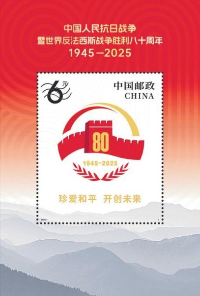 根據(jù)黨中央有關(guān)中國人民抗日戰(zhàn)爭暨世界反法西斯戰(zhàn)爭勝利80周年紀念活動安排,中國郵政于9月3日發(fā)行《中國人民抗日戰(zhàn)爭暨世界反法西斯戰(zhàn)爭勝利八十周年》紀念郵票1套13枚、小型張1枚,全套面值為20.8元。