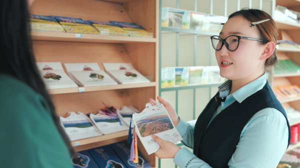 “馬上”郵局營(yíng)業(yè)員彩紅說(shuō):“我手里的這款明信片是異形明信片,明信片上是伊犁風(fēng)光,有天馬的元素,還有流蘇,很有設(shè)計(jì)感。我們還開發(fā)了以伊犁景點(diǎn)為主題的流沙冰箱貼,其中這款紫色的薰衣草冰箱貼是我們這里的爆款。”