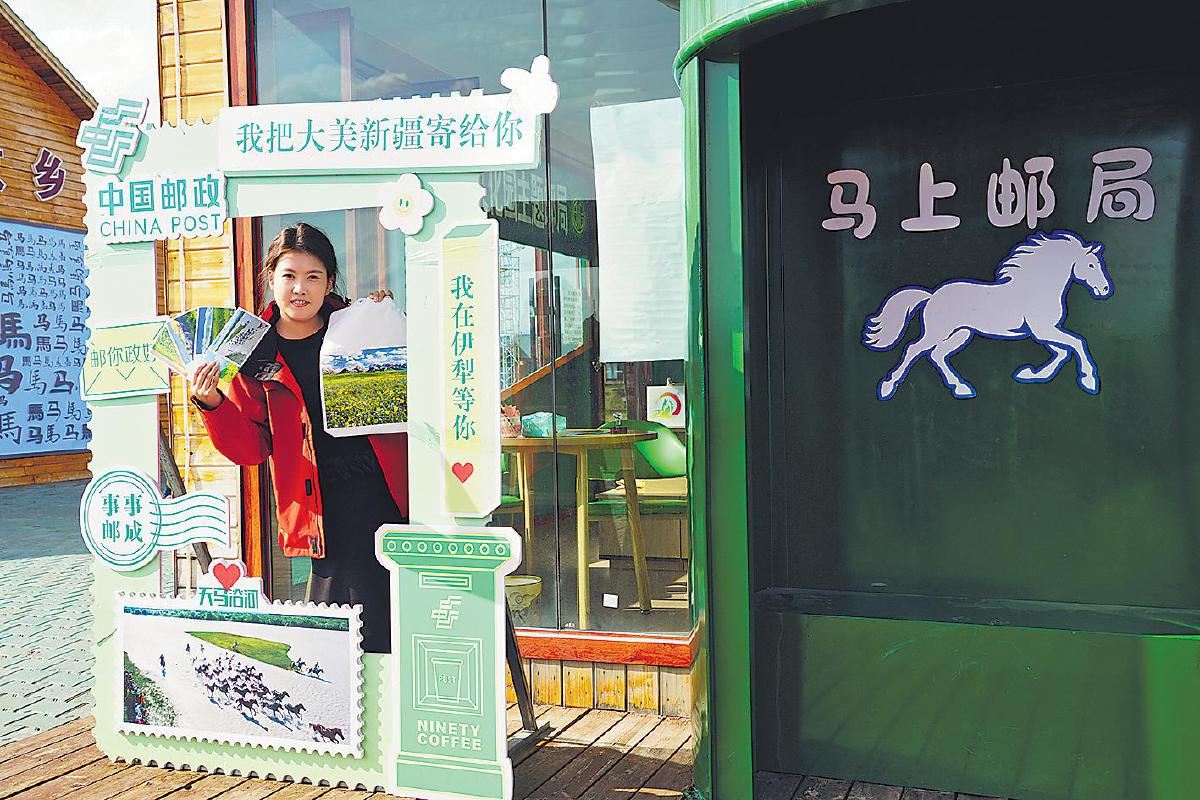 在昭蘇縣天馬文化園,主題郵局以豐富多彩、獨具創(chuàng)意的文創(chuàng)服務為游客留下美好回憶。