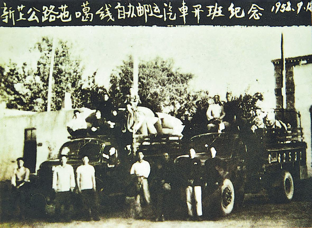 1958年,新藏汽車郵路郵運班車待發(fā)。