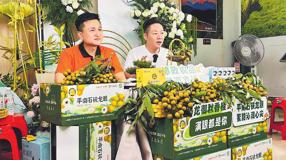 “石硤龍眼是貴港市平南縣的特產(chǎn),作為國家地理標志認證的水果,它的特點是果肉厚實、入口留香。”在石硤龍眼核心基地,郵政直播團隊走進田間地頭,用鏡頭展示龍眼采摘、分揀的全過程,吸引網(wǎng)友紛紛下單;一旁的郵政員工根據(jù)訂單,將龍眼打好包、貼好單、裝上車,發(fā)往全國各地。僅一場直播,貴港郵政就賣出1萬公斤龍眼,直播GMV達100余萬元。