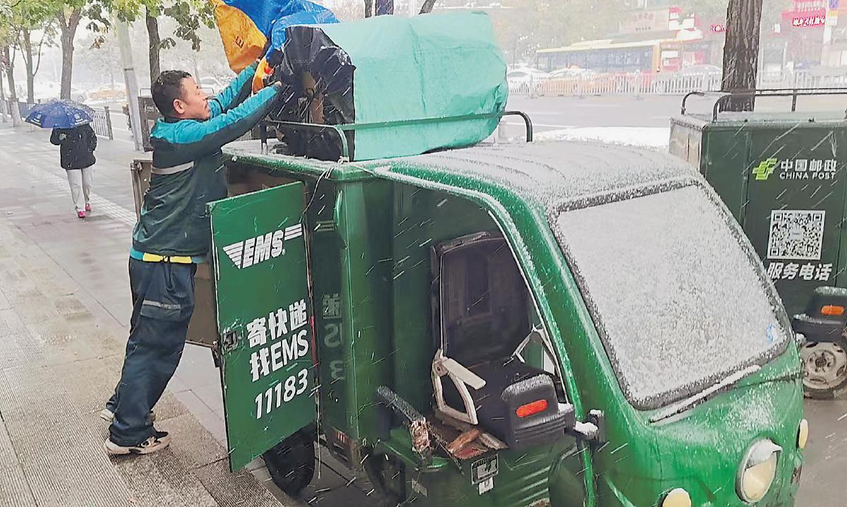 10月15日,黑龍江省哈爾濱市迎來今冬初雪,最低氣溫降至0攝氏度左右。風(fēng)裹著雪粒打在臉上,寒氣襲人。哈爾濱市郵政分公司迅速啟動應(yīng)急預(yù)案,加強作業(yè)調(diào)度,確保在雨雪天氣情況下郵件不積壓。一線攬投員克服道路濕滑等影響,主動延長投遞時間,及時為客戶送去包裹。這抹“冰城”初雪中的“郵政綠”生動踐行著使命必達(dá)的服務(wù)承諾。