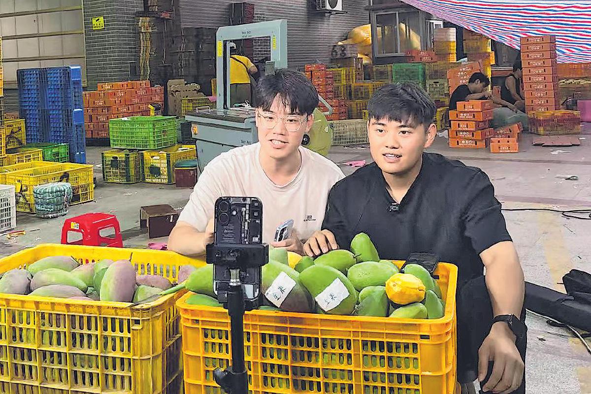 郵政在芒果倉(cāng)庫(kù)現(xiàn)場(chǎng)開(kāi)展直播助銷(xiāo)。