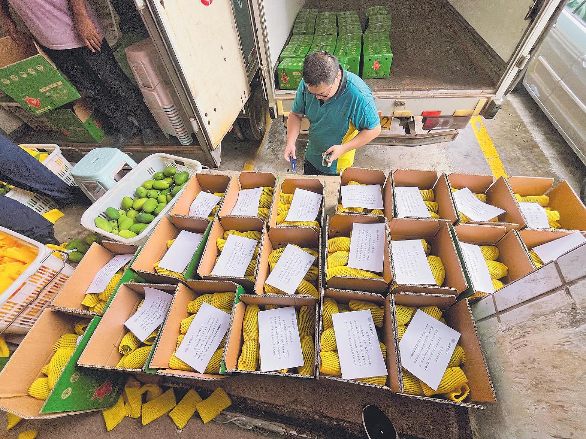 芒果剛采摘下來(lái)就被裝入郵車運(yùn)走。