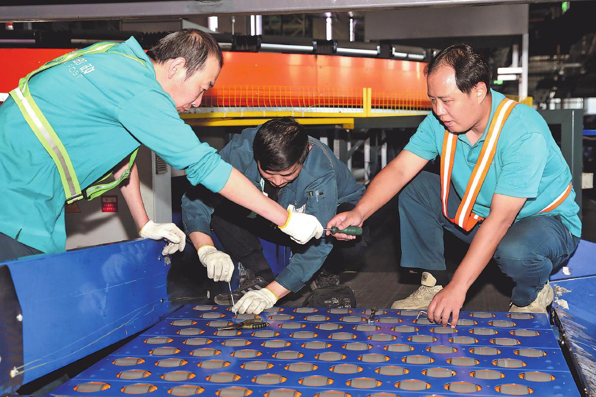 “雙11”生產(chǎn)旺季來臨,北京郵區(qū)中心主動(dòng)出擊,創(chuàng)新推出“搭班作業(yè)”模式,對(duì)生產(chǎn)現(xiàn)場的21套矩陣分揀機(jī)關(guān)鍵擺輪系統(tǒng)進(jìn)行集中改造與升級(jí),以“技術(shù)+管理”雙輪驅(qū)動(dòng),全面筑牢生產(chǎn)保障線,迎接旺季高峰。
