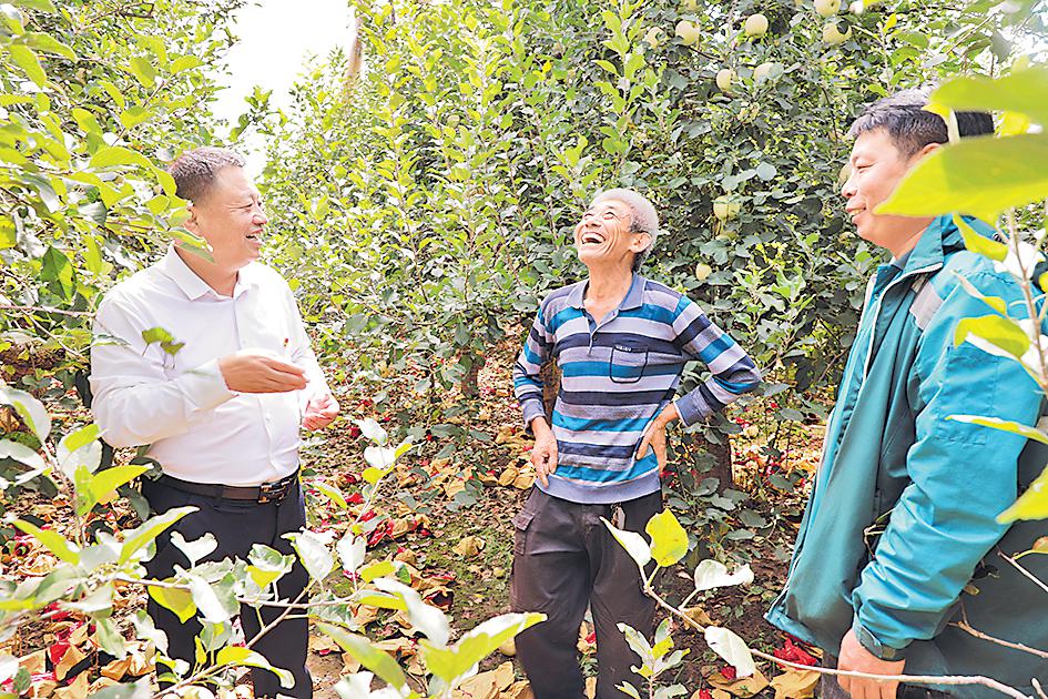邢臺(tái)市城區(qū)分公司黨員專項(xiàng)服務(wù)隊(duì)隊(duì)員走訪果農(nóng)、了解需求。