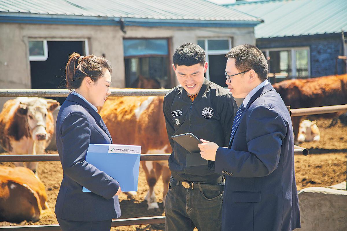 黑龍江省分行員工上門為肉牛養(yǎng)殖戶量身定制金融服務(wù)方案。