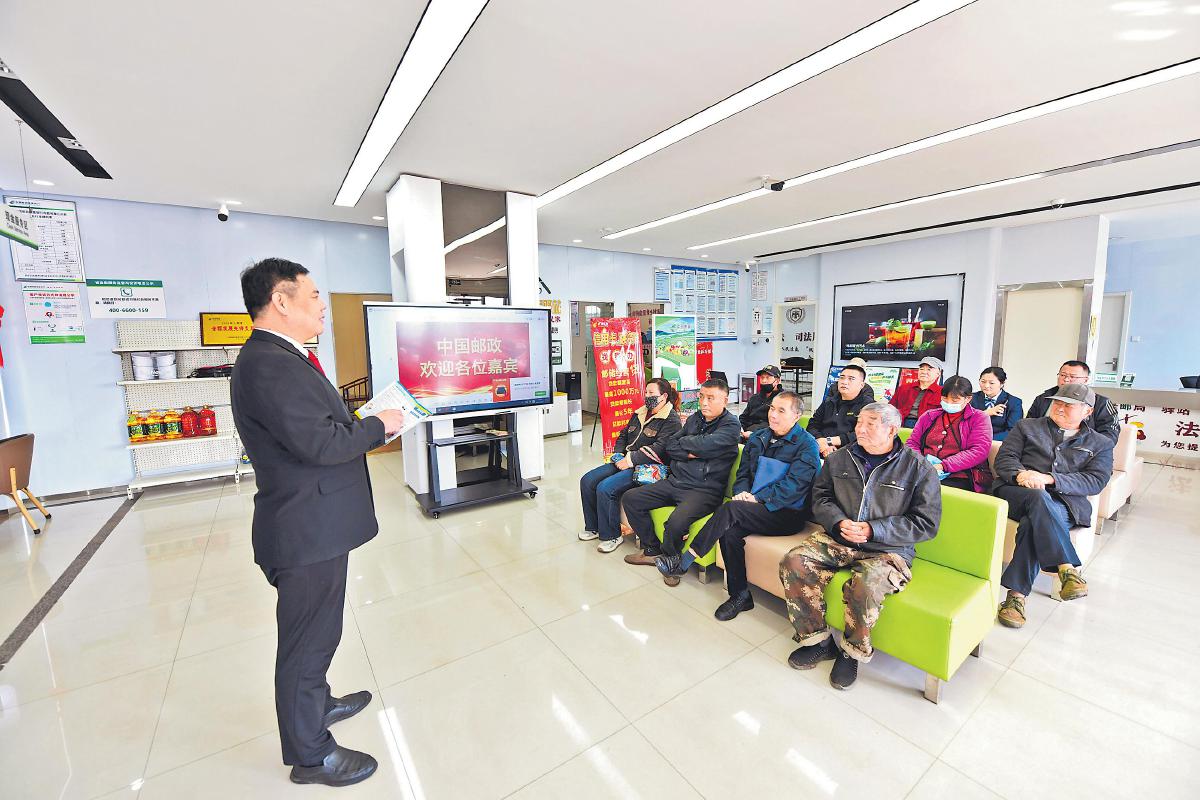 10月20日,沂源縣人民法院東里法庭負(fù)責(zé)人齊元林到法郵服務(wù)站給農(nóng)民普法。