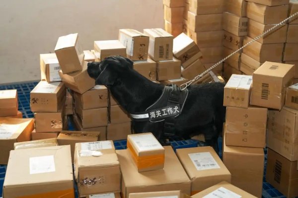 12月10日,海關(guān)工作犬在長沙國際郵件互換局查驗(yàn)進(jìn)口包裹。