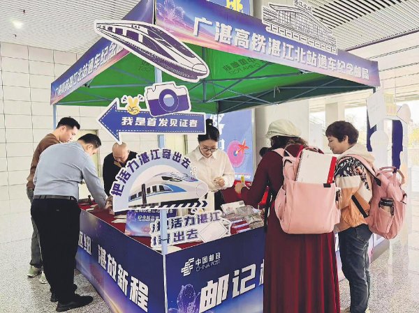 日前,廣州至湛江高速鐵路開(kāi)通運(yùn)營(yíng),為粵西地區(qū)經(jīng)濟(jì)社會(huì)發(fā)展注入新動(dòng)能。湛江市郵政分公司在湛江北站設(shè)立臨時(shí)郵局,推出通車(chē)紀(jì)念封和明信片。不少旅客現(xiàn)場(chǎng)書(shū)寫(xiě)明信片,加蓋紀(jì)念郵戳,把“活力湛江”寄給親朋好友。