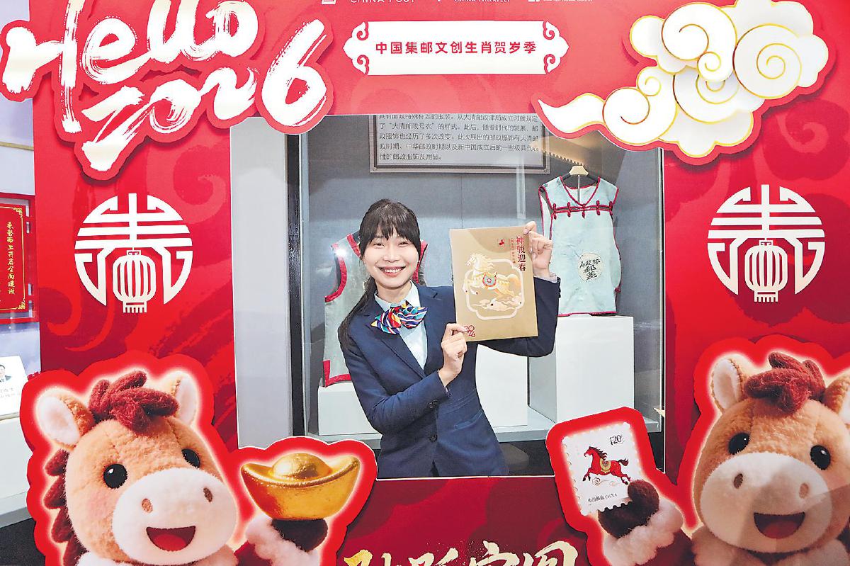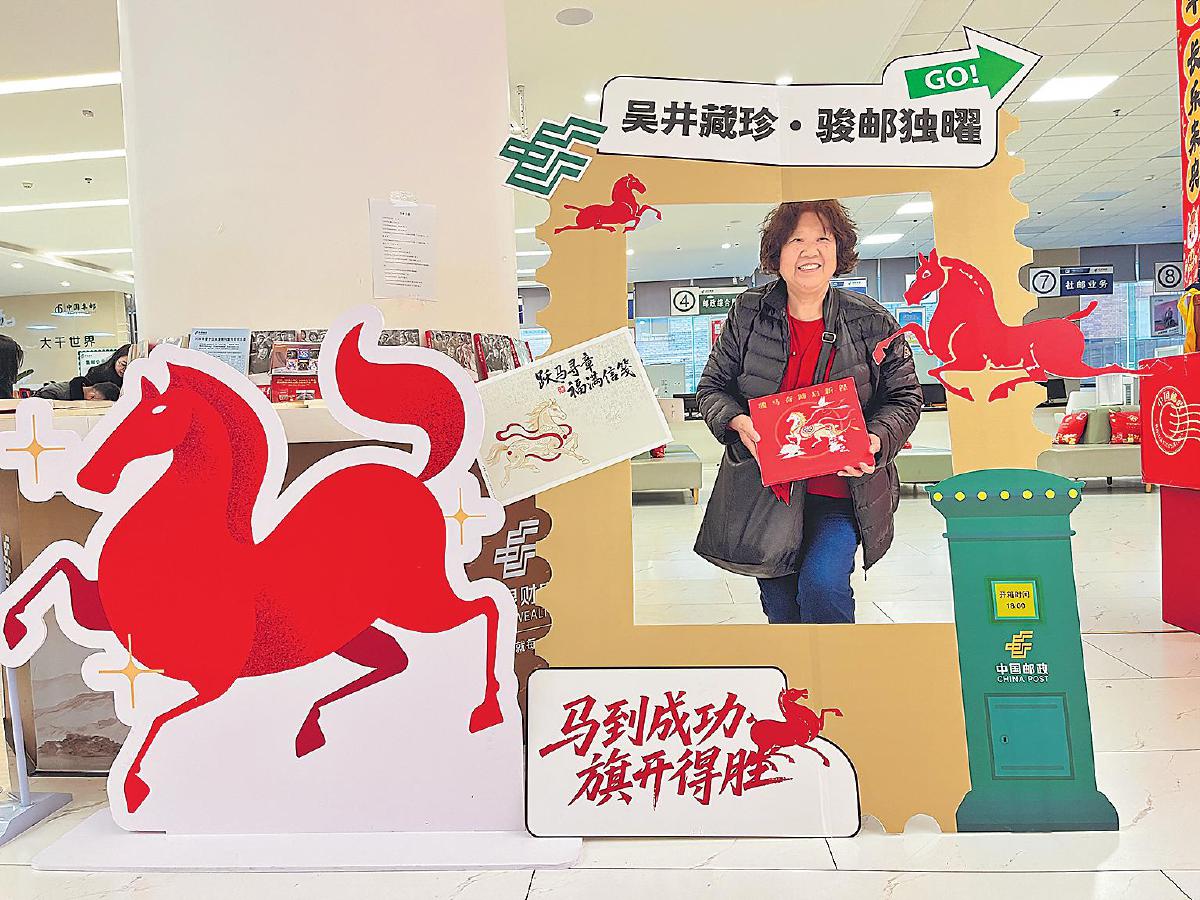 河南省洛陽市郵政分公司在白馬寺郵政所門前布置了“郵政文化市集”,《丙午年》首日封、原地紀念封等緊俏的集郵產品備受關注,琳瑯滿目的生肖主題文創(chuàng)產品和郵政特色函件產品也吸引了眾多目光。郵迷們手持剛剛購買的首日封、明信片,滿懷期待地加蓋新春文化日戳。浙江省衢州市郵政分公司特別在“馬站底”同名地標增設蓋戳服務點,獨特的選址與特色服務,吸引大批郵迷前來加蓋當日首發(fā)的馬年專屬郵資機戳。