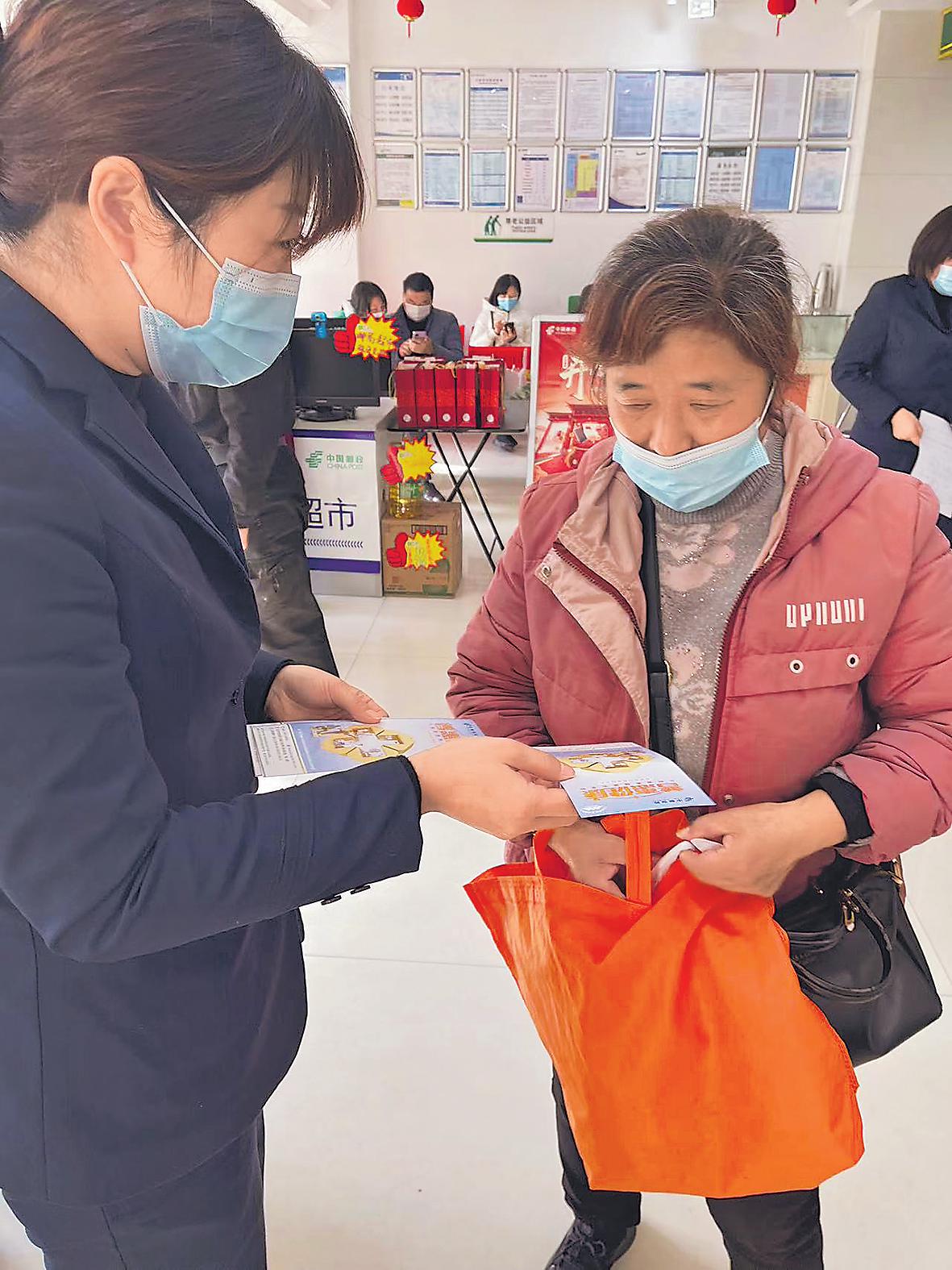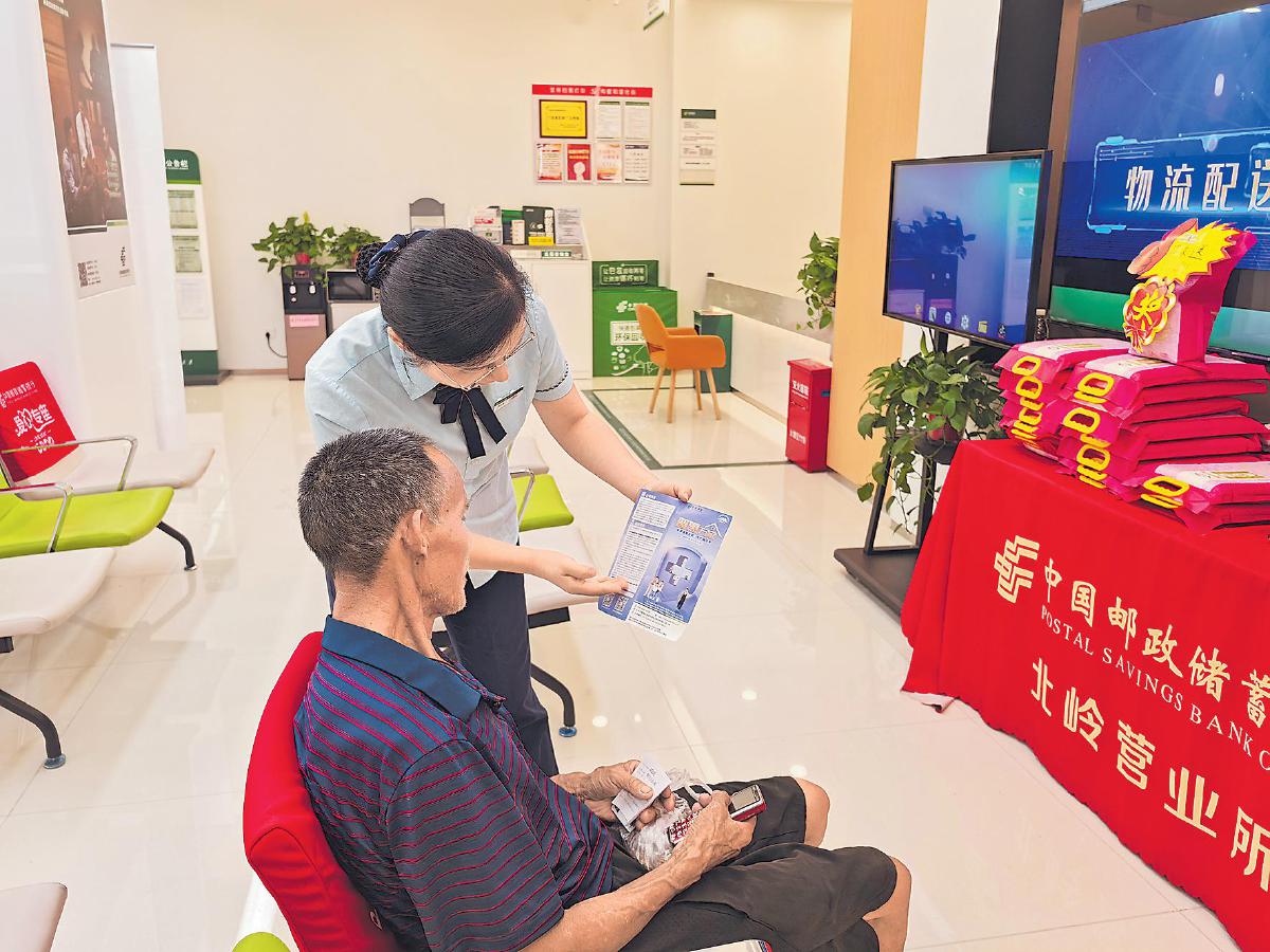 針對老年群體需求,郵政工作人員宣傳定制化普惠保險業(yè)務。