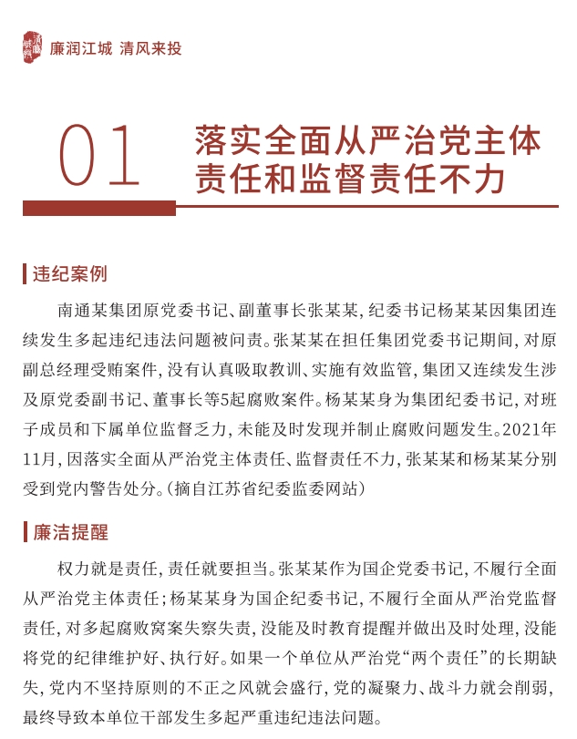 【黨風(fēng)廉政宣教季】 小紅書導(dǎo)入行動 |01 落實全面從嚴(yán)治黨主體責(zé)任和監(jiān)督責(zé)任不力