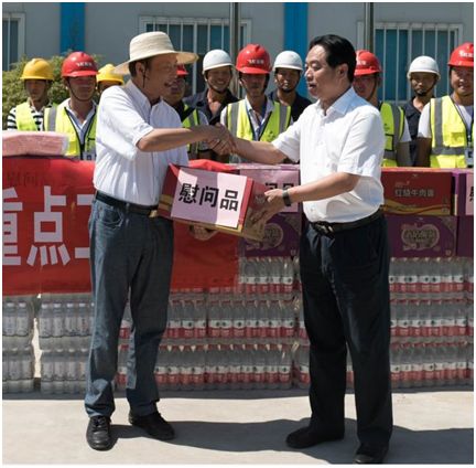 盛總和李總向在酷暑中堅持工作的員工們表示親切的慰問和真誠的感謝,并叮囑大家要根據(jù)夏季特點強化安全意識,確保在高溫條件下安全生產(chǎn)和文明施工的同時更要合理安排好工作、飲食和休息時間。