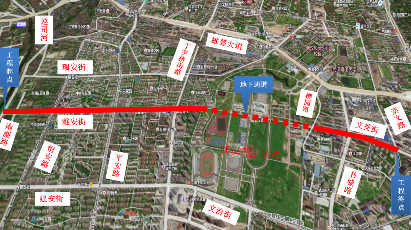 雅安街-文薈街排水箱涵工程(巡司河-崇文路)是武漢市“四水共治”建設(shè)重點(diǎn)工程之一。排水工程采用雨污分流制,全線新建雨水箱涵和污水干管。雨水箱涵全長約3450米,設(shè)計(jì)流量46立方米/秒,在原有雨水管涵的基礎(chǔ)上增加了將近40立方米/秒,排水能力大幅提升,建成后將有效緩解南湖地區(qū)的漬水壓力。同時(shí)新建的兩排D400~D600mm污水干管的匯水能力也比原有污水管道增加了一倍。
