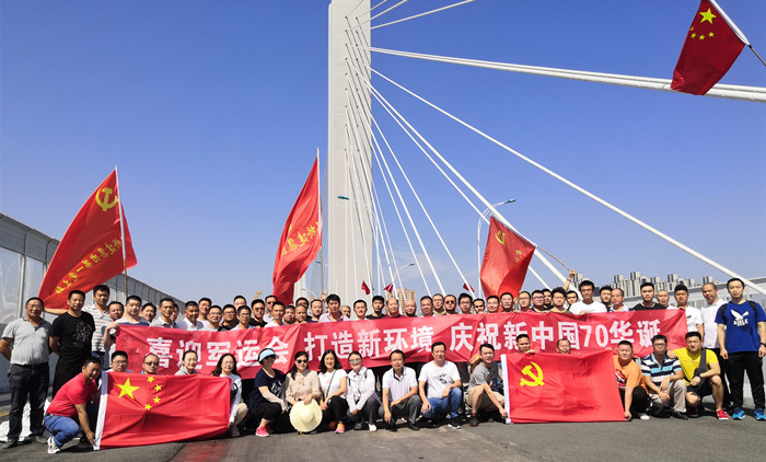 楊泗港快速通道青菱段項(xiàng)目通車在即,10月1日上午,橋建集團(tuán)組織廣大干部職工赴楊泗港快速通道青菱段開(kāi)展現(xiàn)場(chǎng)收尾清潔暨觀摩青菱段跨鐵路斜拉橋橋面ECO混凝土+ SMA13瀝青攤鋪活動(dòng),并在項(xiàng)目現(xiàn)場(chǎng)為祖國(guó)母親七十華誕送上美好的祝福。