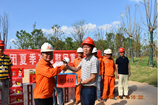 入夏以來(lái),氣溫節(jié)節(jié)攀升,烈日炎炎,熱浪襲人。7月19日下午,市城投集團(tuán)公司副總經(jīng)理盛華來(lái)到橋建集團(tuán)公司黃家湖與三環(huán)線節(jié)點(diǎn)區(qū)域綜合整治工程項(xiàng)目現(xiàn)場(chǎng)慰問(wèn),為奮戰(zhàn)高溫的一線職工送去防暑降溫的物資。市城投集團(tuán)公司兩全辦主任吳偉文、橋建集團(tuán)總經(jīng)理艾詩(shī)明陪同慰問(wèn)。