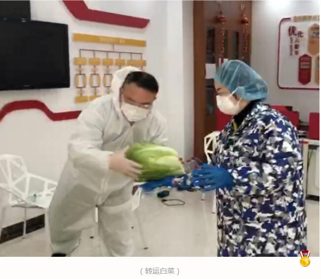 今天的任務(wù)一早就來了,3名同志到社區(qū)不一會(huì)兒,兩噸白菜就運(yùn)到了居委會(huì)門口。很快地,3名同志和社區(qū)工作人員一道,靠雙手轉(zhuǎn)運(yùn)完成了2噸白菜。