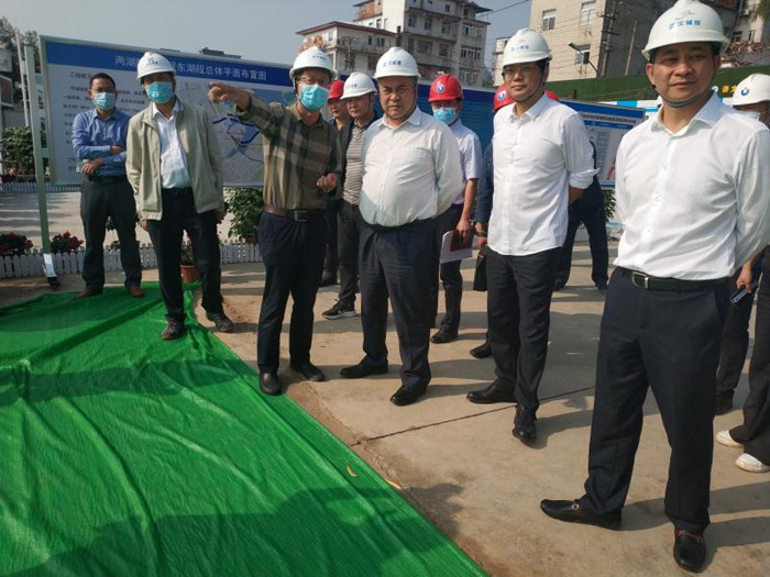 9月30日上午,市政府副市長(zhǎng)張文彤到兩湖隧道東湖段工程施工現(xiàn)場(chǎng),對(duì)項(xiàng)目施工安全生產(chǎn)工作進(jìn)行專項(xiàng)檢查。市城投集團(tuán)公司黨委書記、董事長(zhǎng)李兵,總經(jīng)理余新民參加檢查。
