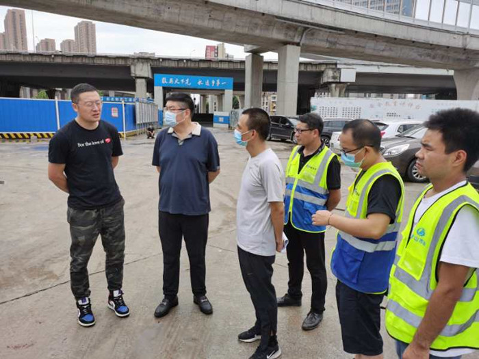 7月12日上午,市城投集團副總經(jīng)理林馳在楊泗港青菱段集結(jié)點檢查市級防汛搶險大隊城投中隊第一尖刀分隊防汛應(yīng)急工作情況。