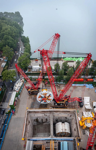 年內(nèi),兩湖隧道建設(shè)所需的“東湖號(hào)”“功勛號(hào)”“爭(zhēng)先號(hào)”3臺(tái)盾構(gòu)機(jī)將陸續(xù)完成組裝和始發(fā)。其中,“東湖號(hào)”盾構(gòu)機(jī)是兩湖隧道工程首個(gè)下井的盾構(gòu)機(jī),待刀盤定位安裝后,“東湖號(hào)”盾構(gòu)機(jī)將開展管線聯(lián)接、調(diào)試等后續(xù)工作,計(jì)劃于6月底正式始發(fā),一路向北掘進(jìn),穿越東湖,直達(dá)省博工作井。另外,位于省博工作井的“功勛號(hào)”盾構(gòu)機(jī),也在進(jìn)行著緊張忙碌的組裝,并計(jì)劃于近日實(shí)施刀盤吊裝。