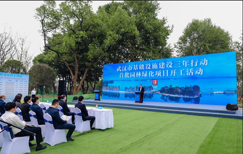 2022年5月18日上午,武漢市基礎(chǔ)設(shè)施建設(shè)三年行動首批園林綠化項目開工活動在東湖風景區(qū)落雁景區(qū)改造項目現(xiàn)場舉行,市委副書記、市人民政府市長程用文宣布開工并講話。