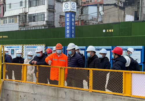 在項(xiàng)目建設(shè)現(xiàn)場,李兵董事長一行仔細(xì)察看了兩湖隧道東湖段風(fēng)光村點(diǎn)位盾構(gòu)始發(fā)井、鋼筋加工場、項(xiàng)目大臨設(shè)施、監(jiān)控指揮中心及項(xiàng)目展廳,詳細(xì)了解項(xiàng)目進(jìn)展情況、巖溶處理及大盾構(gòu)施工準(zhǔn)備情況,并就高質(zhì)量、高標(biāo)準(zhǔn)完成兩湖隧道東湖段項(xiàng)目建設(shè)任務(wù),提出具體要求。